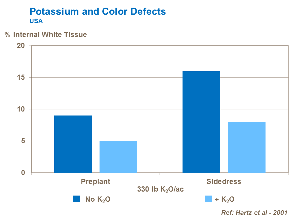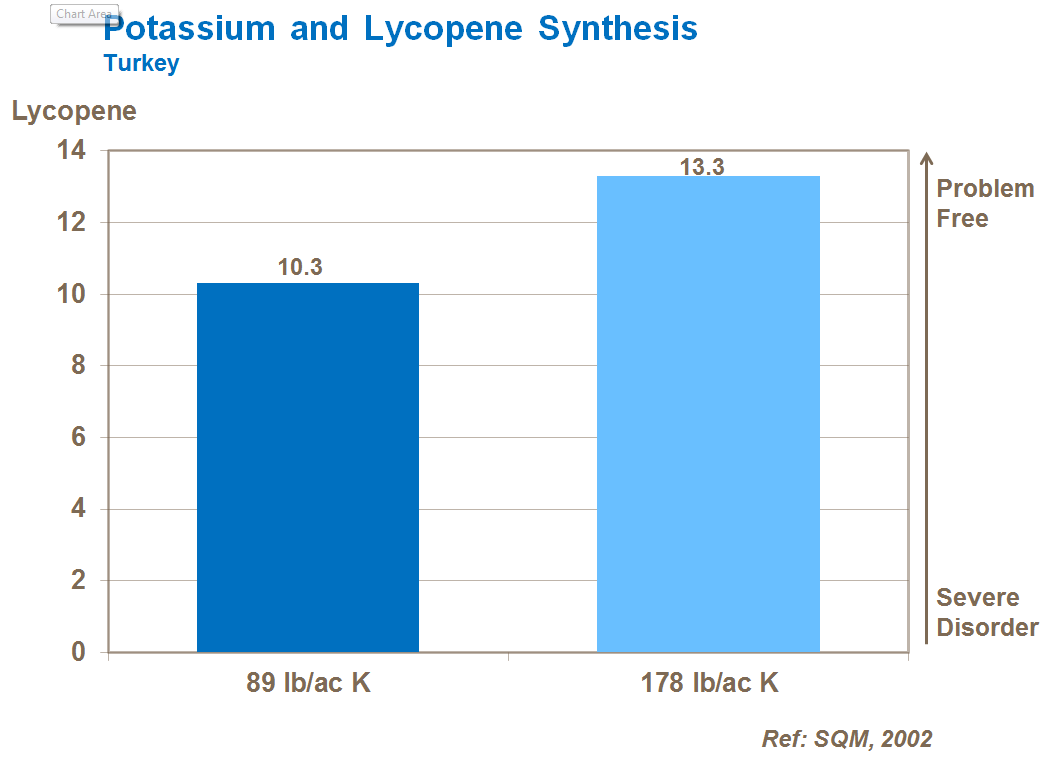 De faibles niveaux de potassium entraînent une réduction de la synthèse du lycopène et donc une mauvaise coloration des tomates.